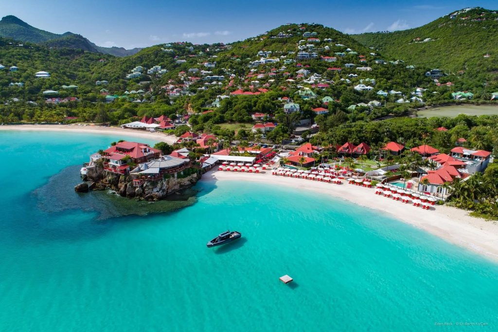 Op de heuvel boven Saint Jean, met panoramisch uitzicht over de baai en de Caribische Zee, ligt Hotel Le Village Saint Barth – een viersterrenhotel dat sinds 1969 door de familie Charneau wordt gerund. Drie generaties inmiddels. Het is het enige viersterrenhotel op een eiland dat verder uit vijfsterrenresorts bestaat, en dat vertaalt zich in een prijs die op Saint Barth als betaalbaar geldt – wat hier relatief is, maar het verschil met de luxe resorts is aanzienlijk.